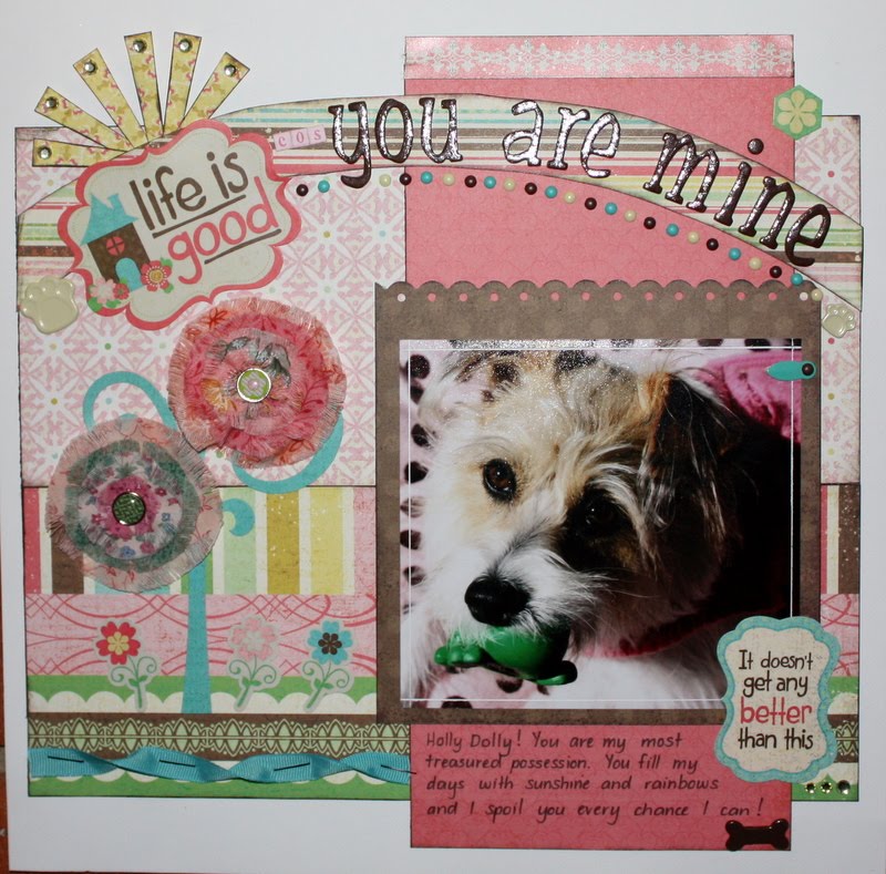 What gorgeous sweet pp you have used, your beautiful handmade flowers & look at that Holly face!! Always so cute!! Beautiful work.